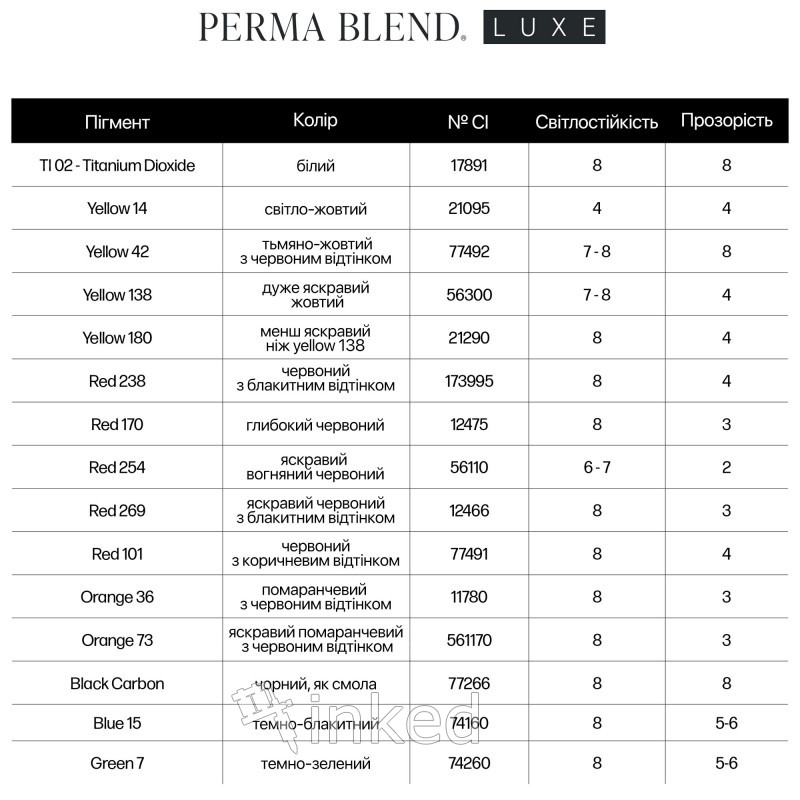 Что означает LUXE: Это совершенно новая линейка пигментов которую разработали с учетом всех новых требований Европейского Союза (ЕС) в соответствии с правилами, установленными REACH. По сути, LUXE это наиболее популярные оттенки Perma Blend воспроизведенные из разрешённых в ЕС компонентов.