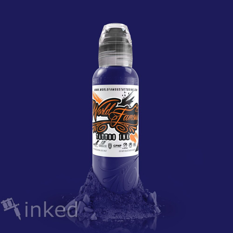 Revolution – темно-фиолетовый цвет от World Famous Tattoo Ink. Яркий, «электрический» сиреневый. Пигмент средней густоты, перед использованием обязательно тщательно встряхнуть. Это качественная американская тату краска с высоким содержанием пигмента. Легко вбивается и хорошо заживает.