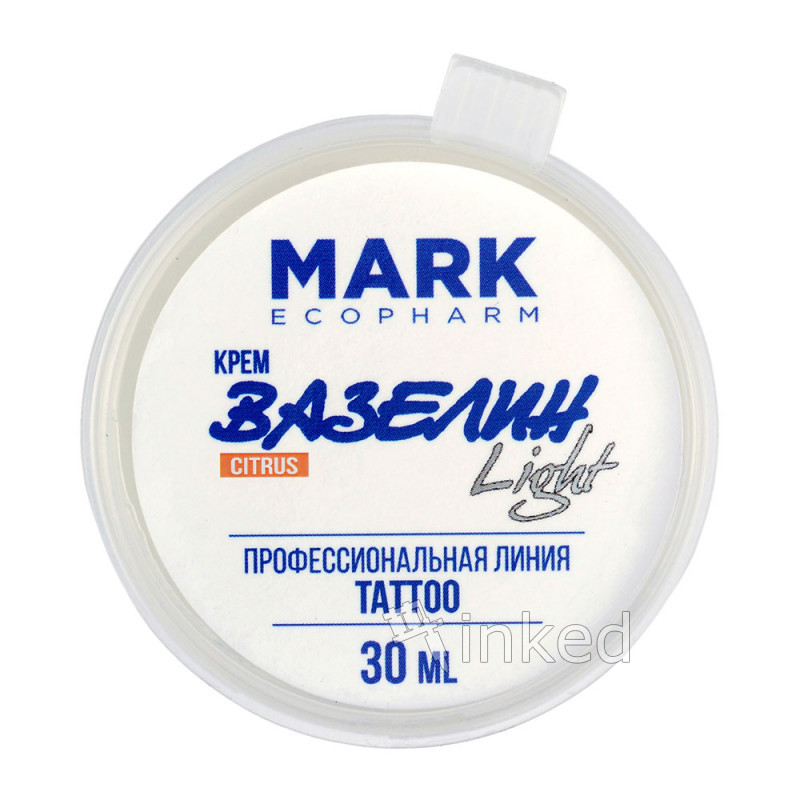 Вазелин CitrusLight – создан на основе "Вазелин original" специально для процесса тату. Имеет нежную текстуру, более лёгок и пластичен. Натуральные масла (Ши, Ромашки, Персиковых косточек) уменьшают покраснение и отечность кожи. Масло апельсина обладает антисептическими и регенеративными свойствами. Витамин F регулирует воспалительные реакции, а значит работа будет заживать быстрее. Light НЕ содержит искусственных красителей и ароматизаторов. Хорошо ложится на кожу, распределяется тонким слоем и не течёт, не забивает иглу, не стирает трансфер. Экономичен. Вазелин Light обладает мягким цитрусовым ароматом. Товар сертифицирован и имеет Вывод МОЗ Украины о бактериальной чистоте.