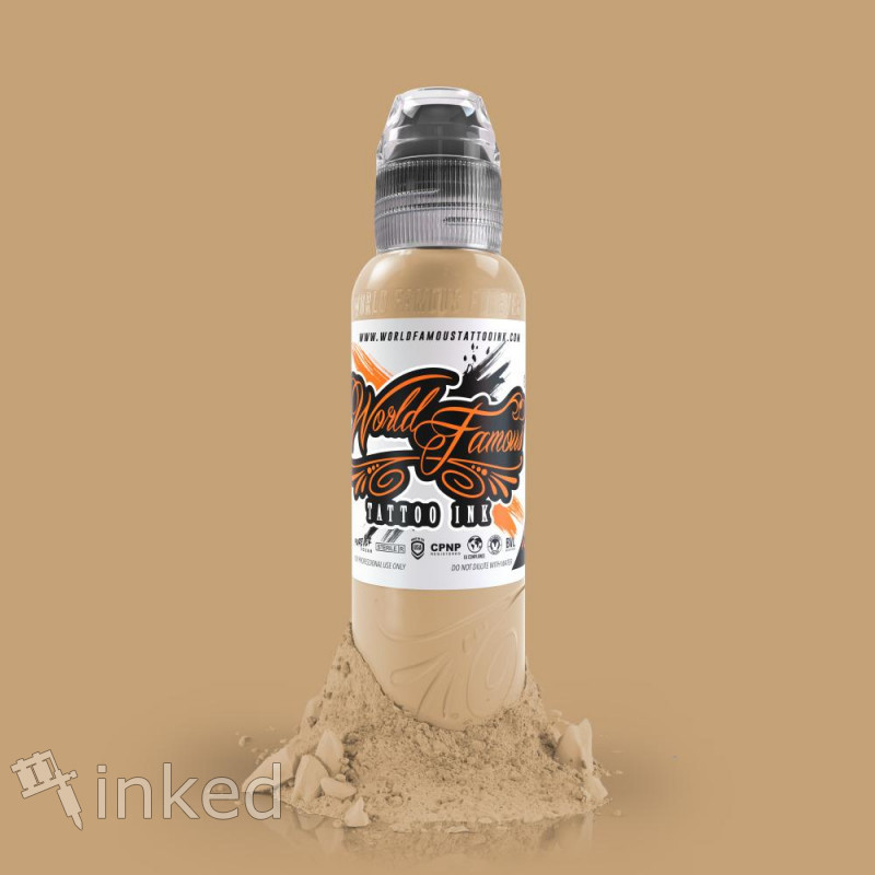 World Famous Cool Honey – бежевый цвет с желто-коричневым оттенком. Входит в состав сэта Pink Ribbon Series, созданного специально для камуфляжа и реставрации послеоперационных шрамов в области ареол, также может быть использован для любой татуировки, требующей натуральных оттенков. Легко вбивается и легко заживает.