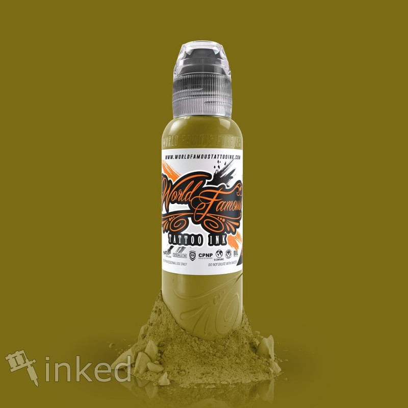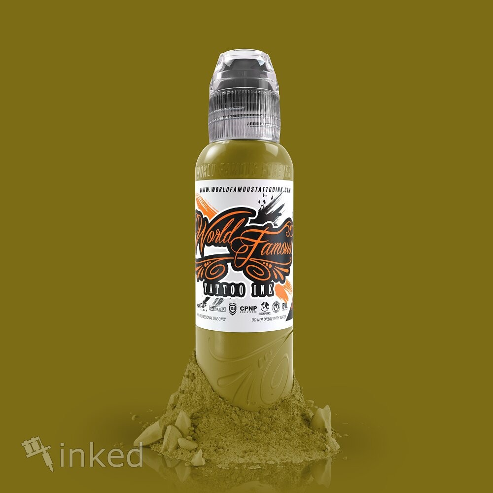 Green Beret – зелёная тату краска World Famous Ink. Оливковый оттенок, с жёлтым основанием. Пигмент плотный. Это качественная американская тату краска с высоким содержанием пигмента. Легко вбивается и хорошо заживает.