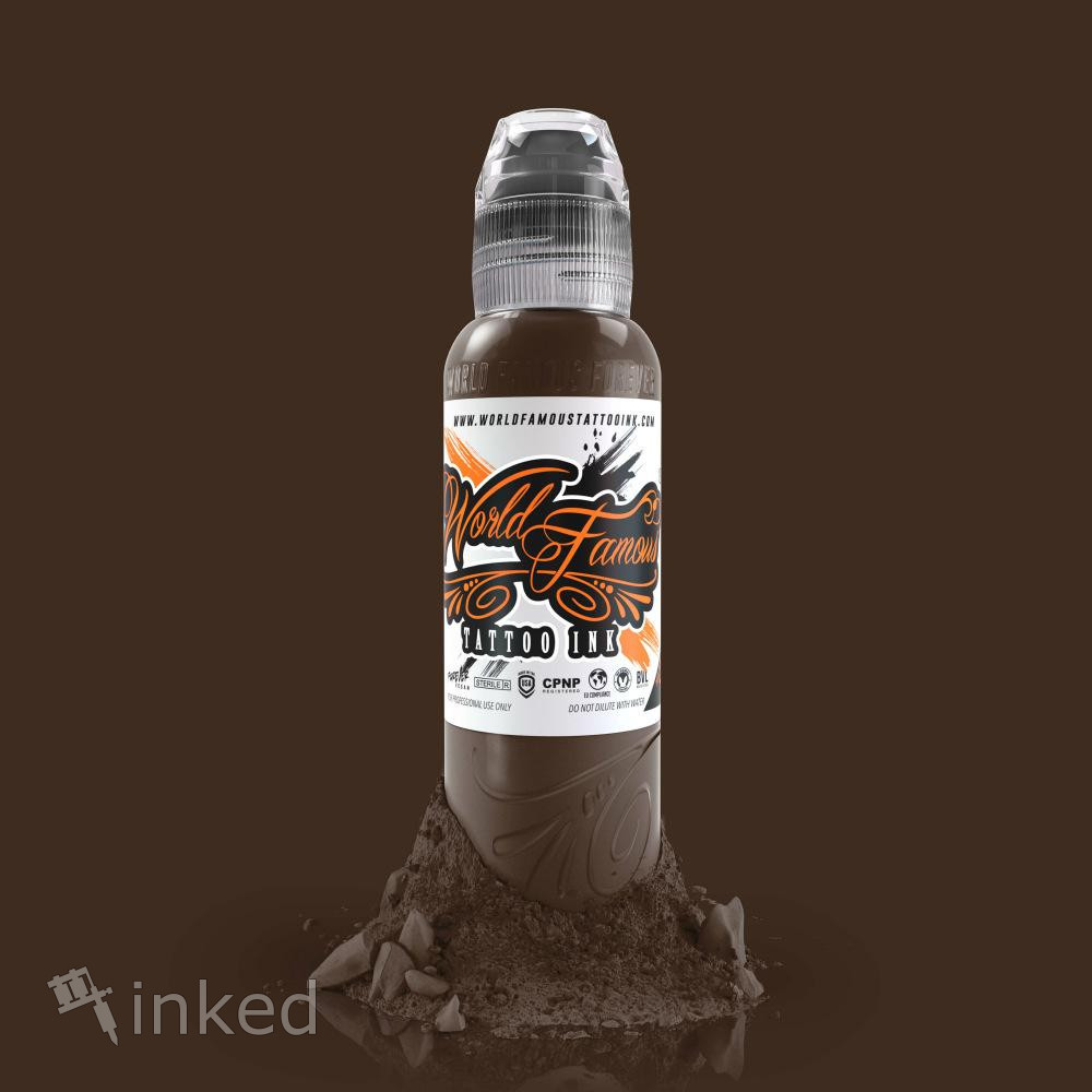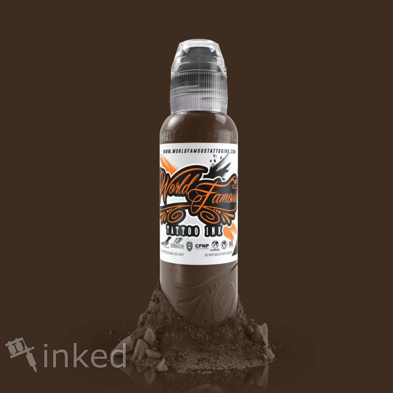 Темно-коричневый цвет с кровавым оттенком Hoover Dam от World Famous Tattoo Ink. Шоколадно-коричневый, насыщенный. Пигмент средней густоты с лёгким лиловым оттенком. Создатели вдохновлялись цветом гор в Черном Каньоне, где собственно находится эта плотина. Это качественная американская тату краска с высоким содержанием пигмента. Легко вбивается и хорошо заживает.