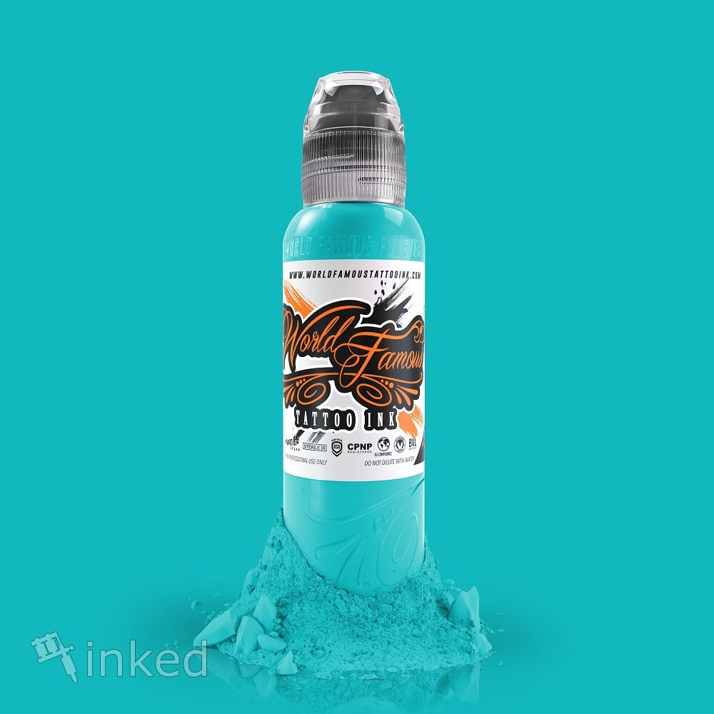 Светло-бирюзовый, лазурный. Мягкий пастельный голубой оттенок с лёгкой текстурой, средней густоты. Это качественная американская тату краска с высоким содержанием пигмента. Легко вбивается и хорошо заживает.