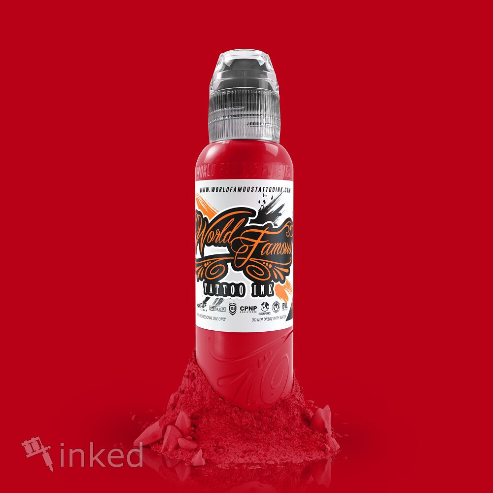 Samuel O'Reilly Red – яркий насыщенный красный от World Famous Tattoo Ink. Яркий красно-коралловый оттенок. Плотный пигмент, средней густоты. Это качественная американская тату краска с высоким содержанием пигмента. Легко вбивается и хорошо заживает.