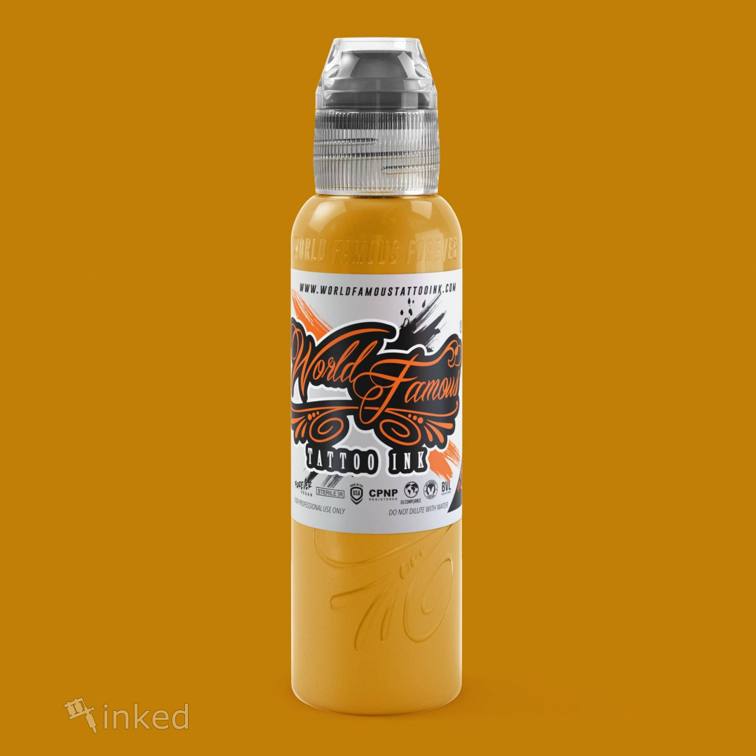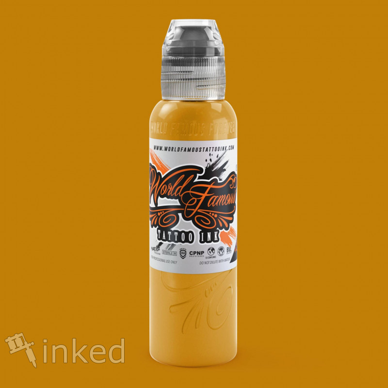 Spanish Gold – золотисто-коричневый пигмент, цвет настоящего золота Spanish Gold от World Famous Tattoo Ink. Натуральный желтый цвет с нейтральным оттенком создающий глубокий и непрозрачный тон. Это качественная американская тату краска с высоким содержанием пигмента. Легко вбивается и хорошо заживает.