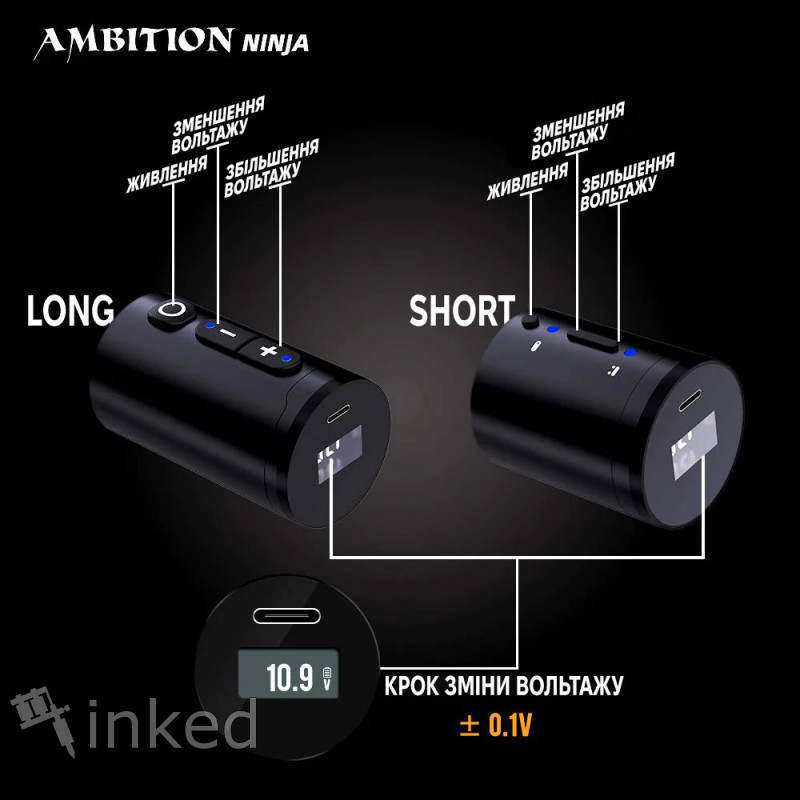 У машинки Ambition Ninja есть 2 версии - SHORT и LONG. Отличие заключается только в блоке питания, в версии SHORT он меньше, в версии LONG - больше.