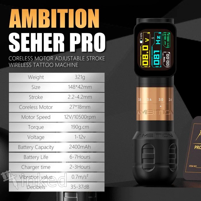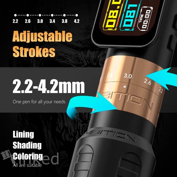 Профессиональная беспроводная тату-машинка Ambition – это сочетание мощности, удобства и универсальности. Изготовленная из авиационного алюминиевого сплава и точно вырезанная на ЧПУ-станке, эта тату-ручка идеально подходит как для профессионалов, так и для тех, кто стремится выйти на новый уровень в тату-искусстве.