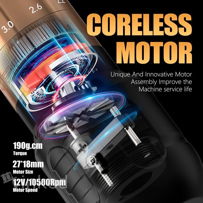 - Двигатель: Бессердечниковый мотор Ambition - 12 В/10500 об/мин