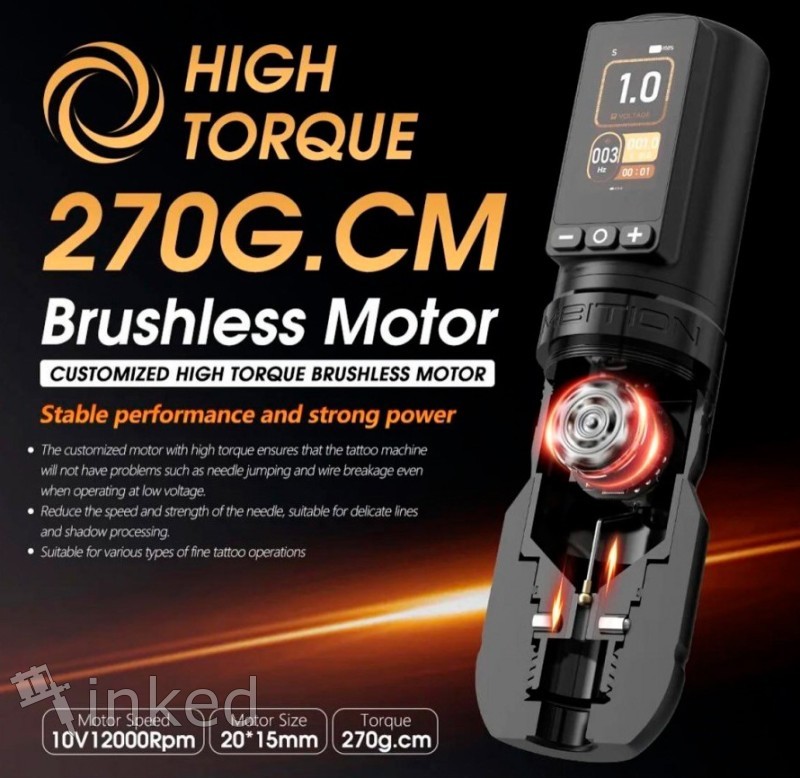 Эта машинка объединяет в себе передовые функции и высокую производительность, делая процесс татуирования максимально комфортным и эффективным. Среди её уникальных возможностей — яркий экран, встроенный фонарик для дополнительного освещения и таймер для удобного контроля времени работы.