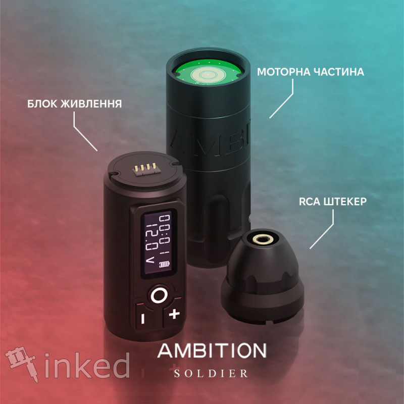 Ambition Soldier Tattoo Machine - универсальная беспроводная машинка, тихая и с минимумом вибраций. Подходит как для лайнинга и шейдинга, так и для плотной зарисовки. Совместима со всеми стандартными картриджами.