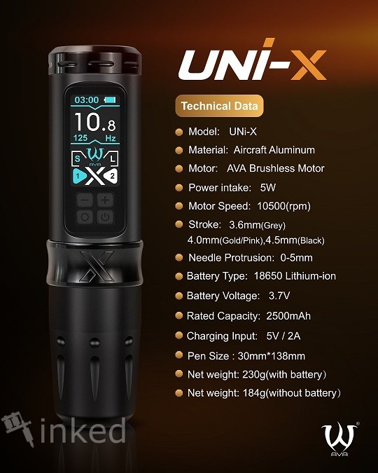UNI-X Rotary Pen — профессиональная тату-машинка с мощным бесщёточным мотором и таймером