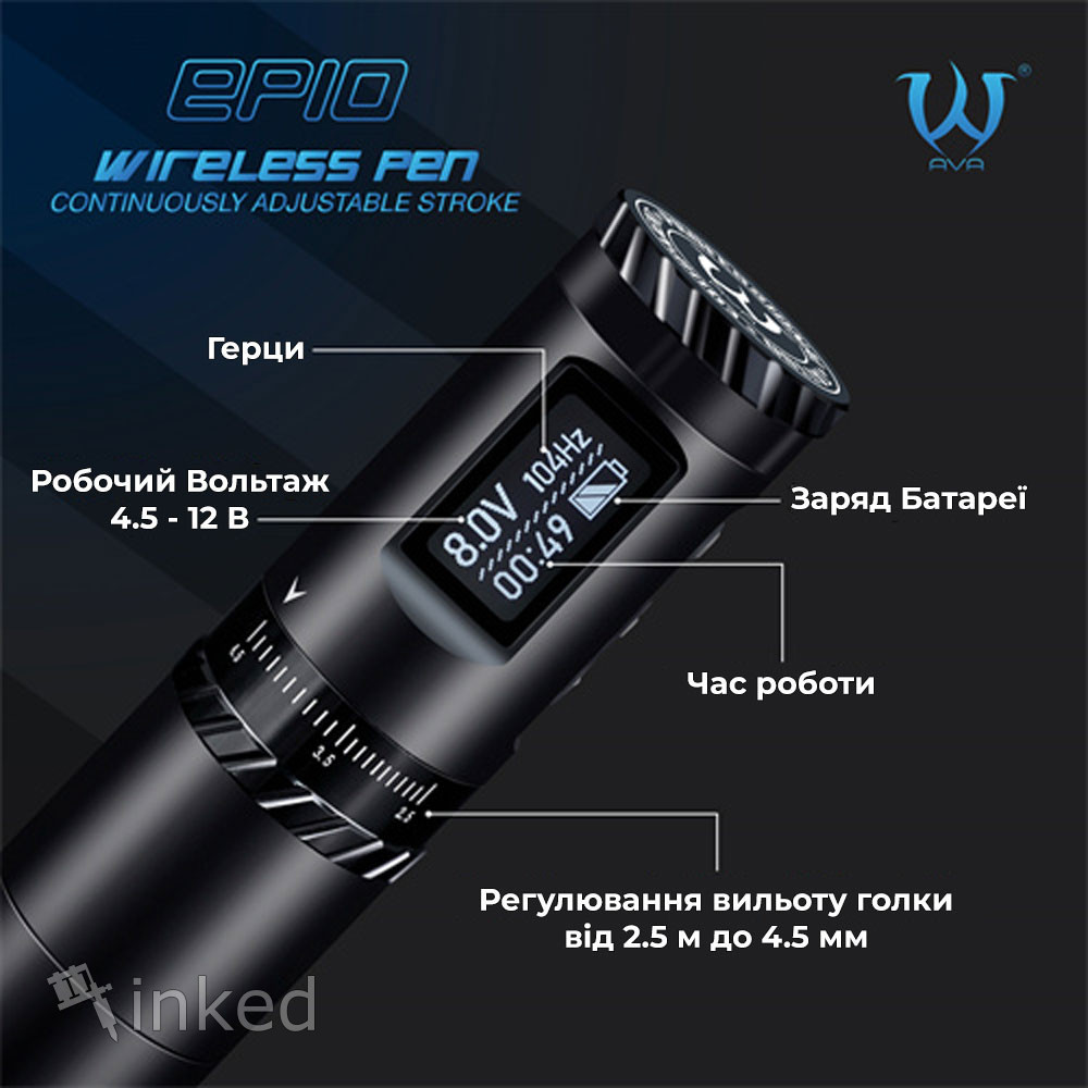 Беспроводная тату-машинка EP10 AVA Tattoo - мощная машинка, что справится с любой работой, от тонких линий до плотной зарисовки.