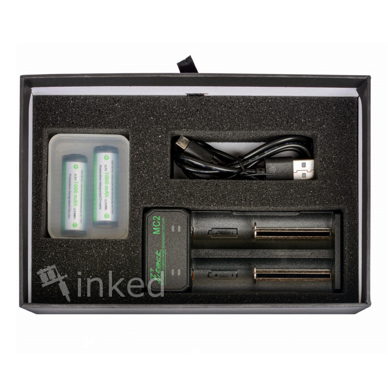Машинка EZ Portex оснащена блоком питания высокого класса, который содержит нестандартную батарейку 4/5 АА Mognon (3,7 V Li-Ion 14430 / 14*42 мм на 1000 mAh), которую можно заряжать индивидуально с помощью зарядного устройства, а саму EZ Portex можно подключить к стационарному блоку питания, благодаря специальному переходнику, идущему в комплекте, и клип-корду (покупается отдельно). В комплекте к EZ Portex идет две батарйки, которые можно менять местами при низком уровне заряда одной батареи.