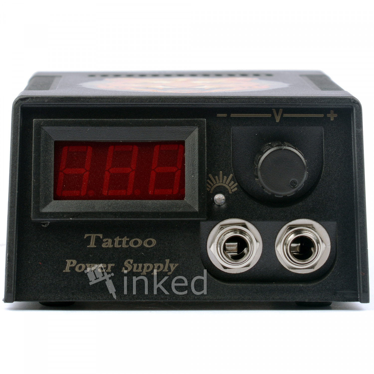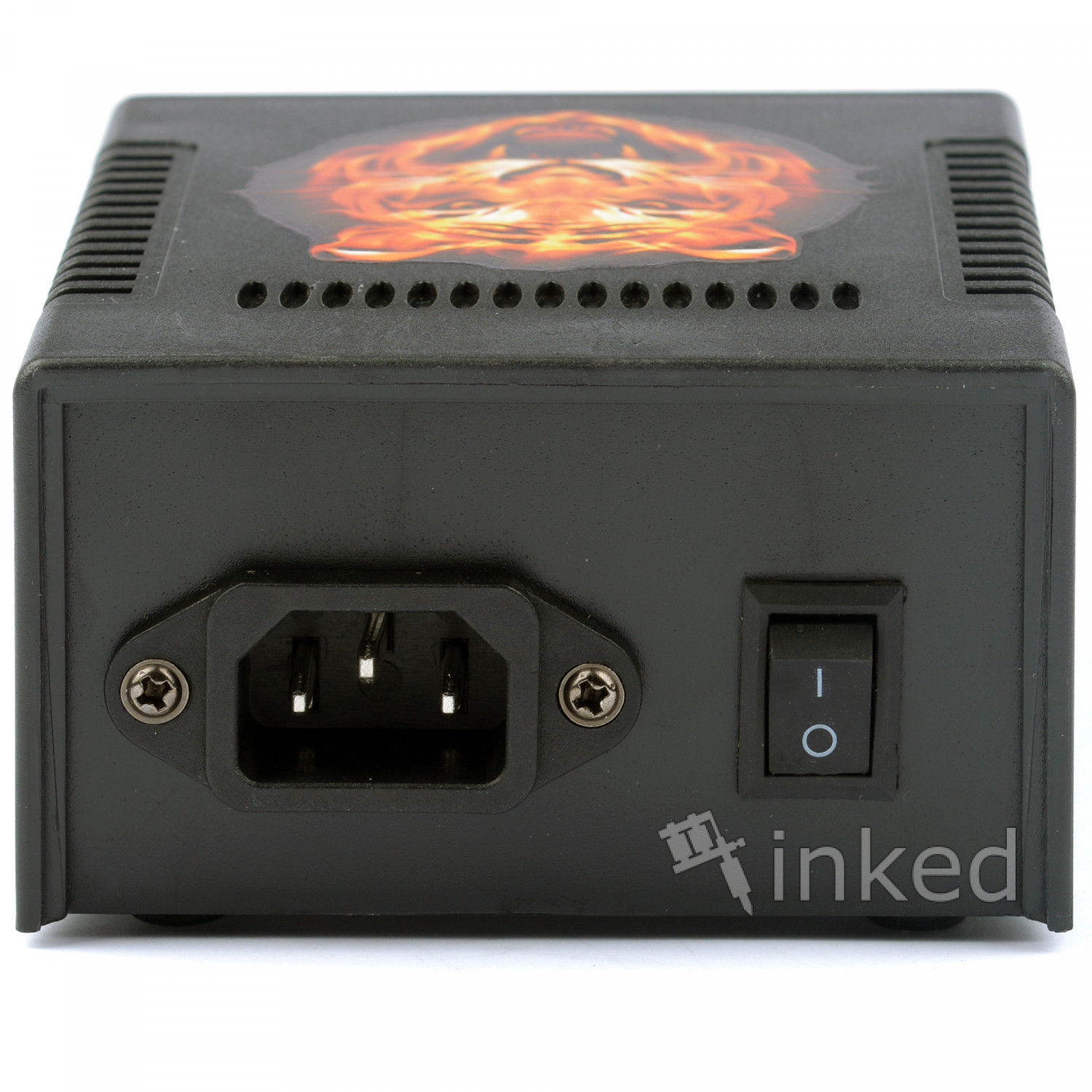 Блок питания имеет два входа для педали включения и клипкорда, а так же цифровой дисплей. С нижней стороны расположены противоскользящие резиновые накладки. Блок легко регулирует нужное вам напряжение, обеспечивая мощный и стабильный ток для работы тату-машинки. Удобен в использовании.