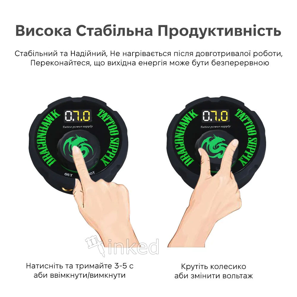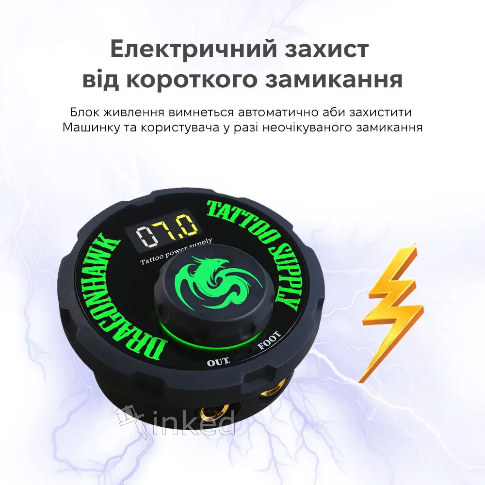 Блок питания для татуировок Dragonhawk P087 выгодно отличается своей технологией переключения режимов, позволяющей эффективно преобразовывать электрическую энергию и удобно регулировать выходное напряжение.