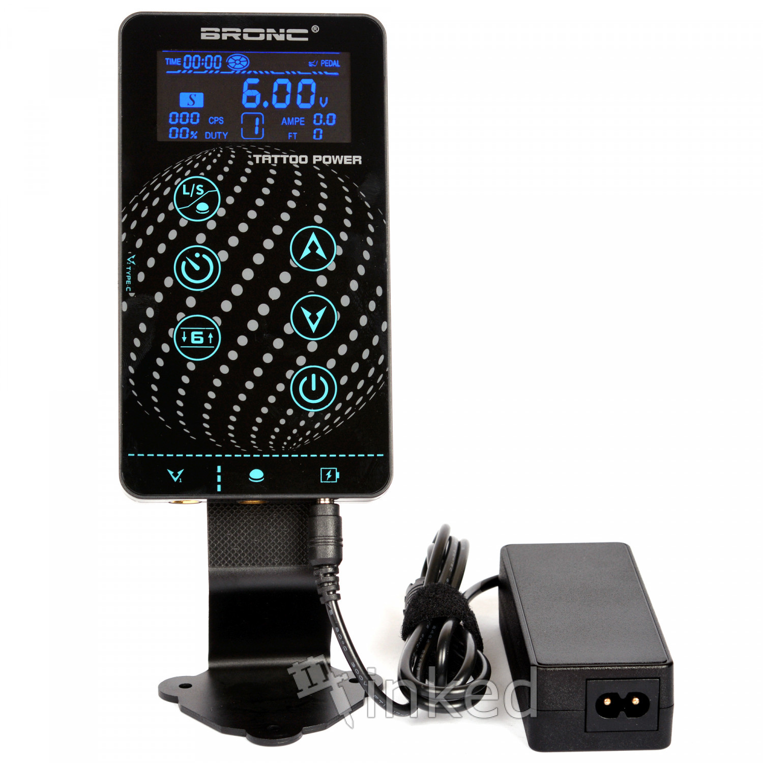 Цифровой блок питания для тату машинок в стильном пластиковом корпусе. Управляется кнопками, что позволяет использовать барьерную защиту. Запоминает последние настройки. Имеет режим работы без педали. Может работать одновременно с двумя машинками благодаря наличию интерфейса USB Type-C и кабеля, который входит в комплект.