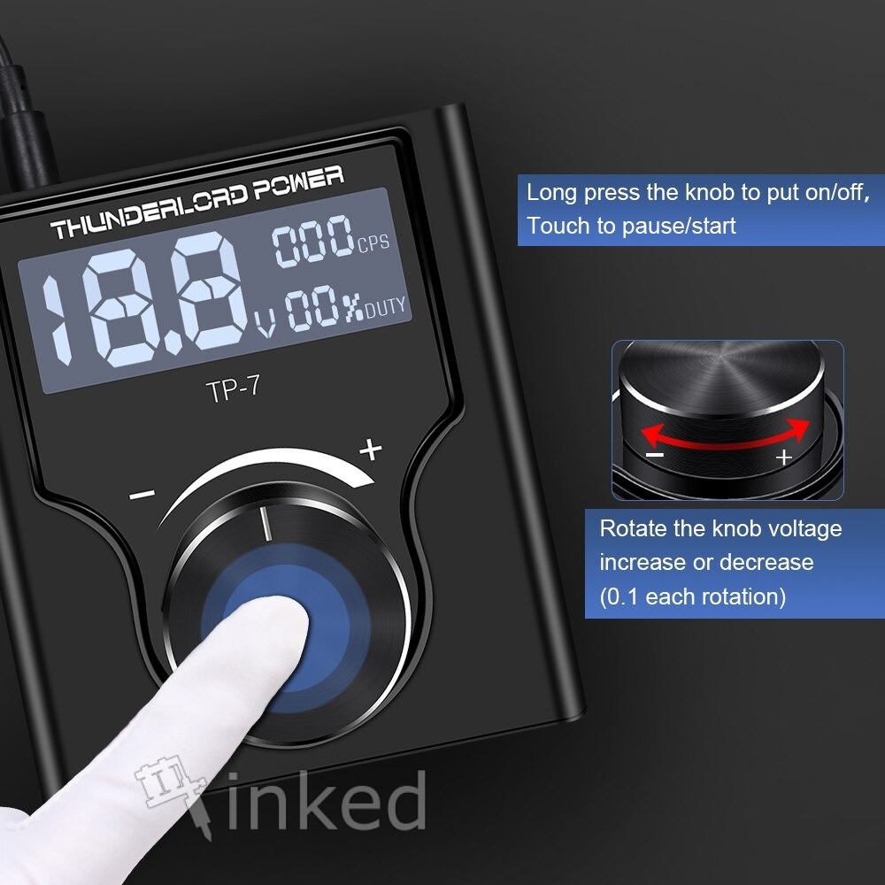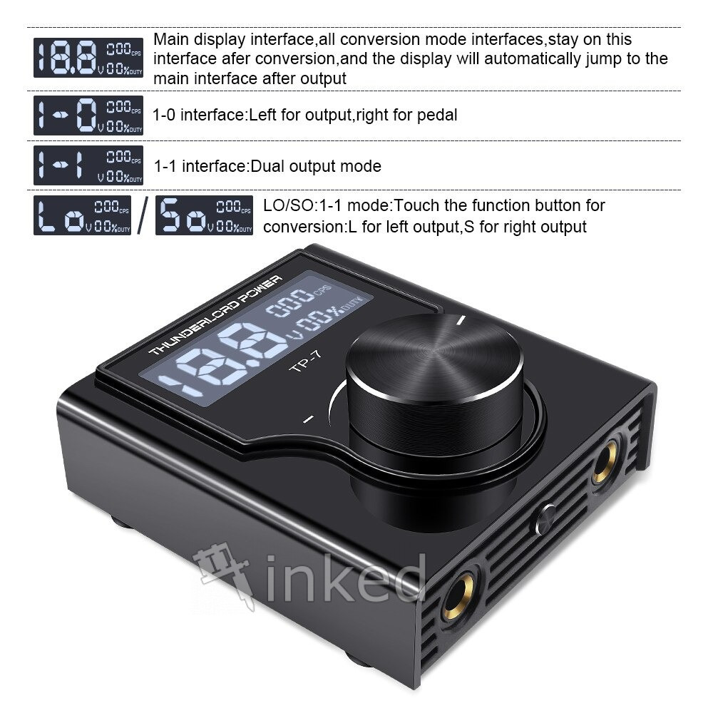 Thunderlord TP-7 – эргономичный и простой в эксплуатации блок питания. Совместим с тату машинками и педальными переключателями всех популярных производителей.