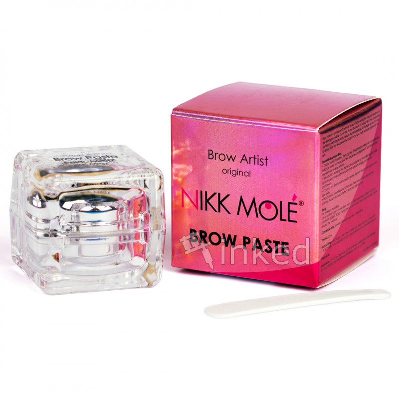 Brow Paste Nikk Mole является единственной оригинальной запатентованной пастой на мировом рынке и стран СНГ. Благодаря правильному балансу природных масел в составе, наша фирменная паста имеет пластичную текстуру, невероятно комфортную в работе. Она легко наносится, не течет, прекрасно держит контур, не пропускает пигмент к коже.
