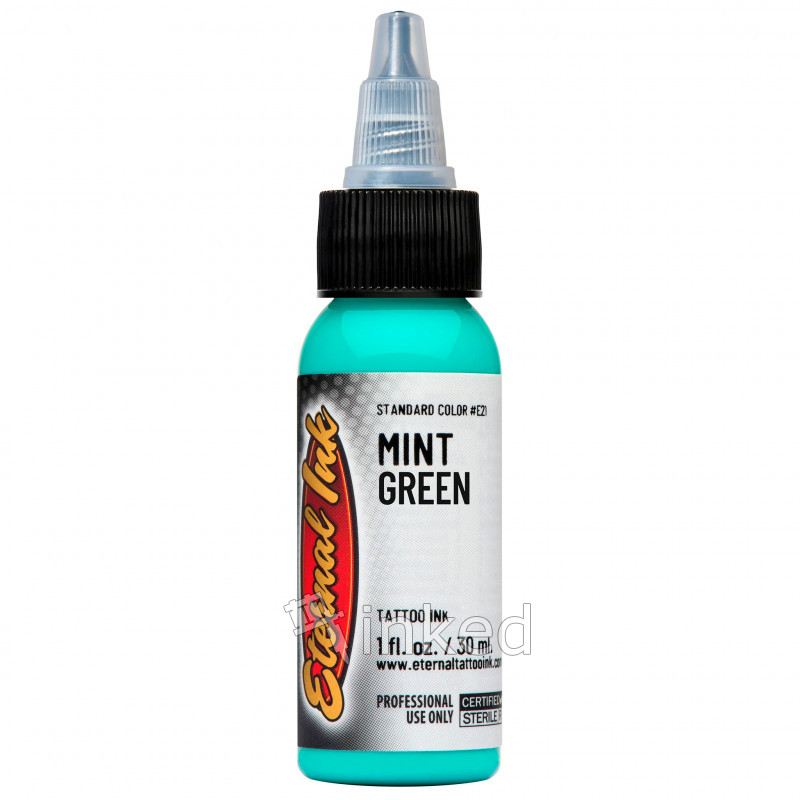 Холодный, свежий, лёгкий. Мятный цвет сочетает прохладу и одухотворенность голубого со спокойствием и гармоничностью зеленого. Идеален для изображения морских волн, реалистичного неба, льда, кристаллов. Можно использовать в качестве основного цвета, экспериментируя с яркими акцентами. Незаменимый холодный оттенок манит, притягивает взгляды. Необходим в вашей палитре тату красок Eternal.