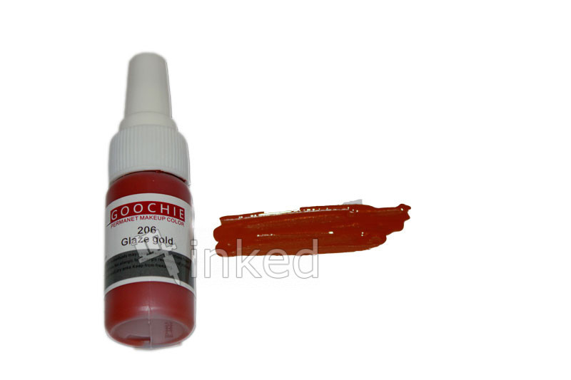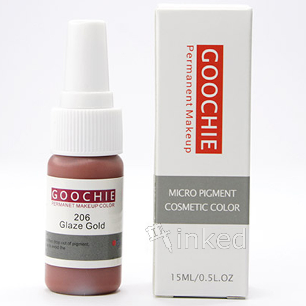 Goochie 206 (Глазурь золото / Glaze gold) – используется также для коррекции серых и зеленовато-синих оттенков. Золотисто-коричневый Светлый оттенок коричневого. Подходит для клиенток-блондинок и обладательниц светлой кожи. Рекомендуется добавлять серо-коричневый пигмент, чтобы избежать появления слишком светлого оттенка.