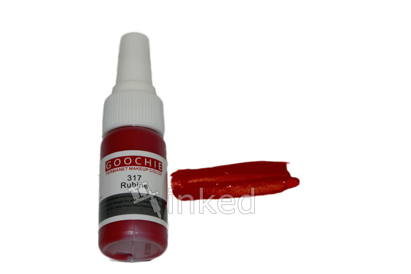 Goochie 317 Goochie 317 (Рубин / Rubine) – красивый темный рубиновый оттенок. Темный, поэтому особенно неопытным мастерам: Работать только в технике микропигментирование и только на светлой теплой коже. В случае неправильного использования может дать синеву! Для профилактики синевы в него можно добавить 318 в соотношении близком 1к1.