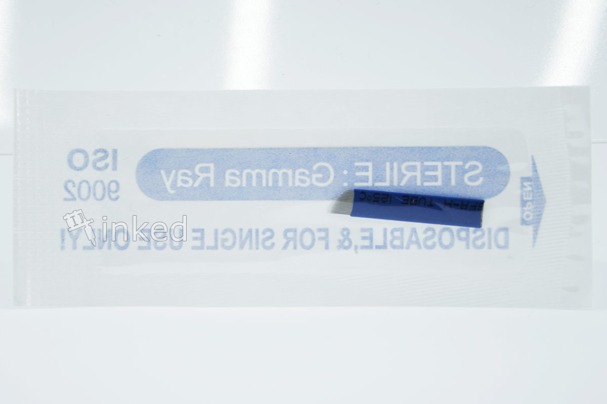 Острое лезвие для прорисовки тончайший волосков, представляющая спайку из 14 иголок. Используется в ручных техниках татуажа.Игла одноразовая...