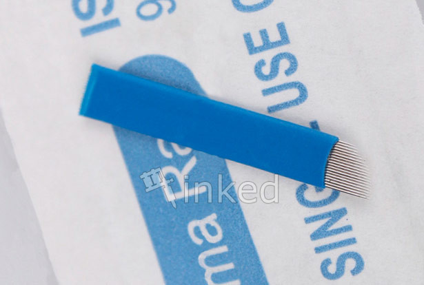 Острое лезвие для прорисовки тончайший волосков используется в ручных техниках татуажа, представляющее спайку из 18 иголок.