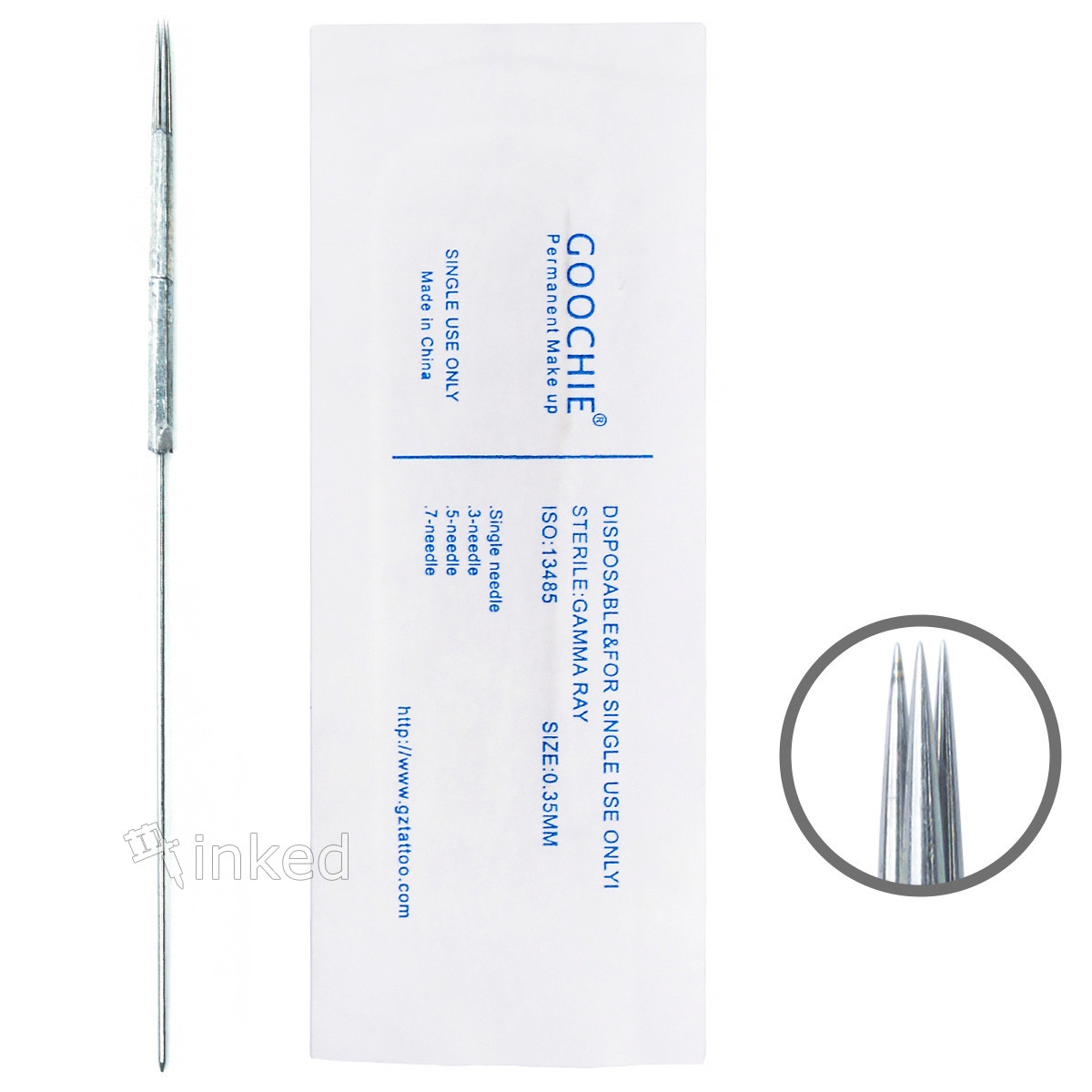 Классические плоские иглы для перманентного макияжа от Goochie. Каждая иглы прошла стерилизацию гамма излучением и упакована в индивидуальну...