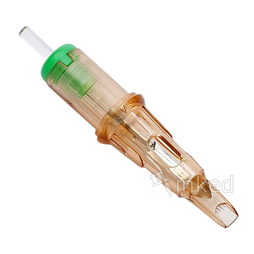 Теперь с системой V потенциальная проблема с разбрызгиванием чернил была уменьшена на 75%, а новая цельнокруглая конструкция корпуса картриджа позволяет набирать на 20% больше краски. Кроме того, улучшенные наконечники улучшают дисперсию краски для оптимизации насыщения кожи – больше краски попадает под кожу и меньше тратится впустую.