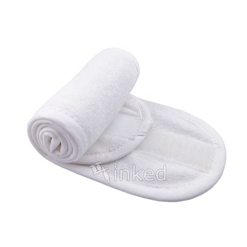 Повязка крепится на липучке, что позволяет регулировать размер и делает его универсальным. Убирав волосы за повязку, можно с удобством наносить очищающие средства и другие вещества не боясь испачкать волосы клиента. С обеих сторон мягкая полотенечная ткань, что делает ее использование комфортным.