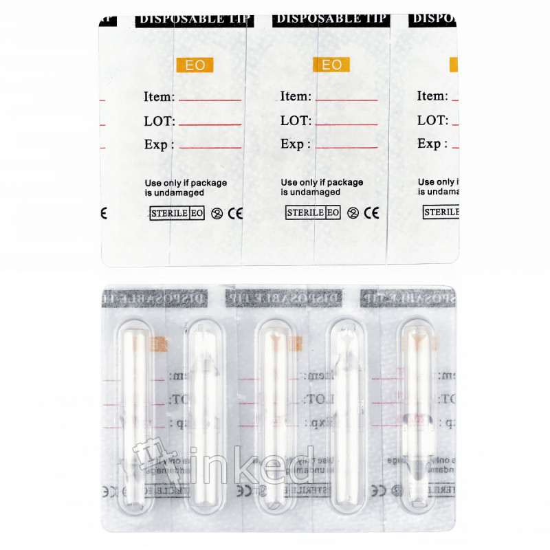 Одноразовый наконечник – типса, используемая вместе с иглой в процессе работы тату машинки. После процедуры подлежит утилизации. Этот наконечник имеет удлинённый носик и форму, адаптированную под определённый тип иглы. Изготовлен из пластика, продается в стерильной, герметичной упаковке-блистере.