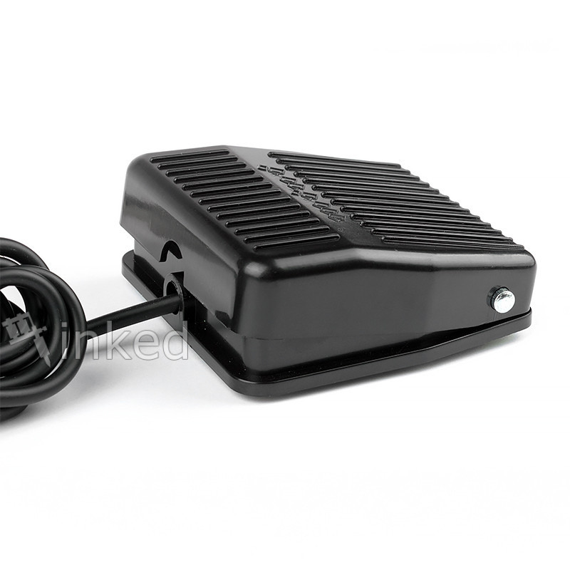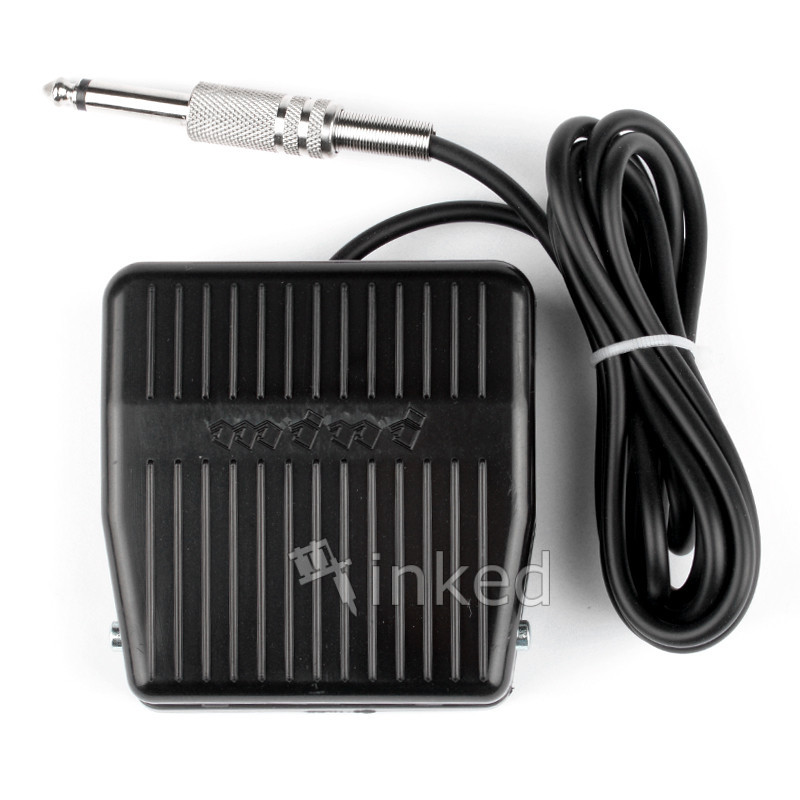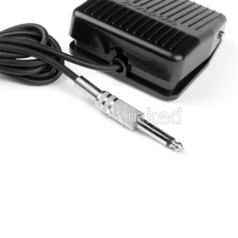 Педаль для работы с блоком питания помогает регулировать мощность тату машинки. Предварительно изделие нужно подсоединить к электроцепи, с одной стороны которой будет располагаться блок питания, а с другой – непосредственно, сама тату машинка.