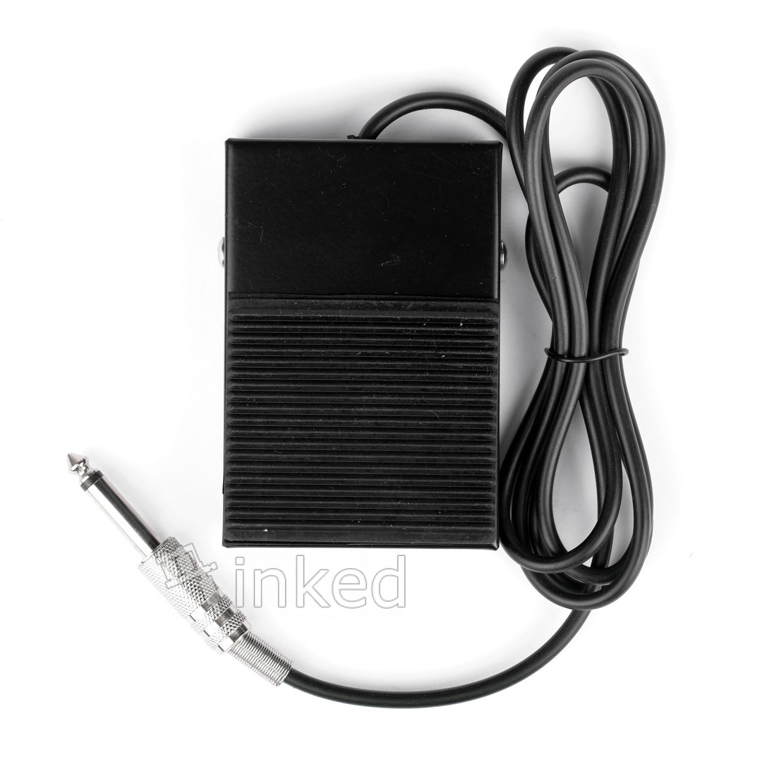 Прорезиненная педаль для работы с блоком питания – это элемент, без которого не обходится ни одна процедура нанесения тату. Изделие является дополнением к татуировочной машинке. Оно существенно упрощает работу мастера, позволяя ему оперативно запускать и останавливать движения иглы, по необходимости. При этом не будет необходимости в задействовании рук. Педаль, прежде всего, необходимо присоединить к электрической цепи: по одну сторону расположен блок питания, по другую – татуировочная машинка. Игла для татуировок приводится в движение после осуществления нажатия на педаль.
