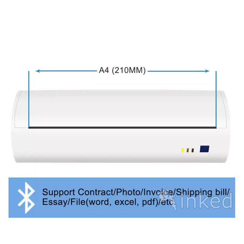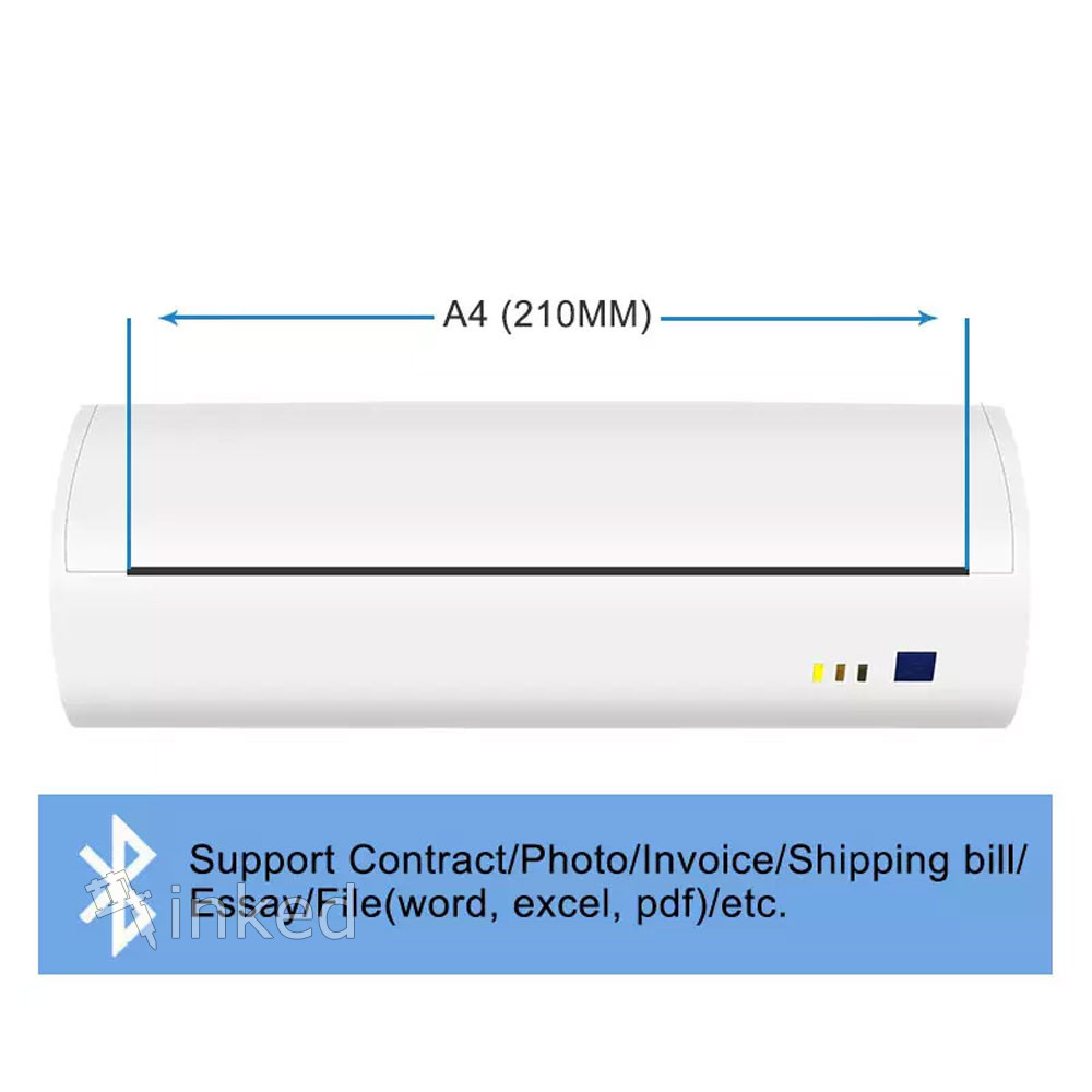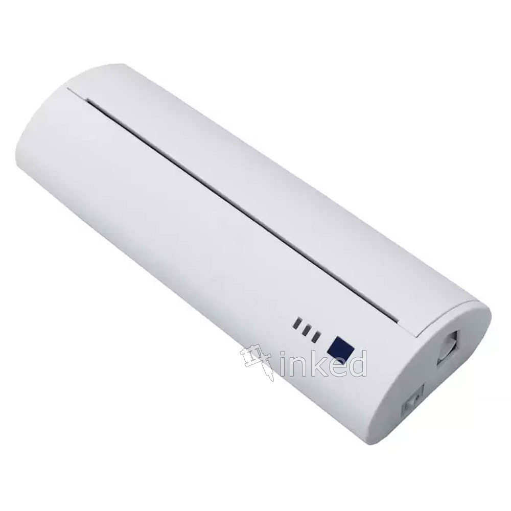 Тату принтер для печати трансфера. Держит заряд 72 часа, чего хватает для 50 минут непосредственно печати. На корпусе есть LED индикаторы, что информируют об отсутствии бумаги, открытой крышке корпуса и зарядке. Работает через Bluetooth и micro USB. Совместим со всеми популярными ОС (Android, IOS, Windows).