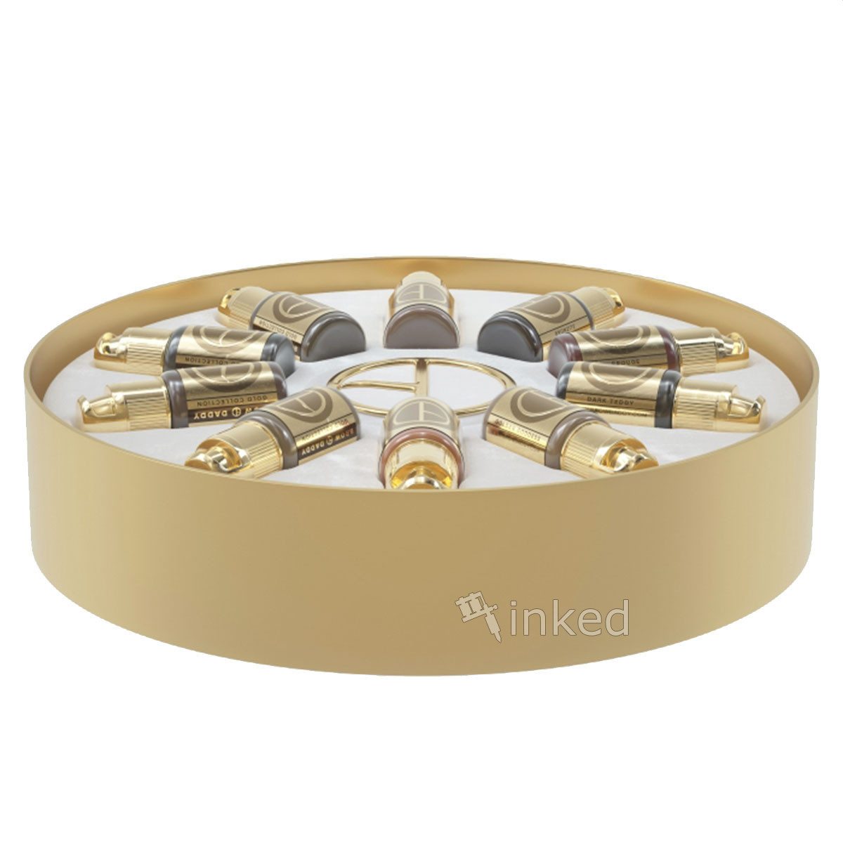 The Gold Collection – сет который состоит из 10 флаконов теплых и нейтральных цветов, от светлого до черного. Этот диапазон цветов с высокой степенью заживления (80–100%) позволяет художникам точнее выбирать цвета в соответствии с оттенками кожи клиента. "The Gold Collection" предлагает мастерам не просто новые оттенки любимых пигментов, но и более нейтральные цвета, которые подходят большинству клиентов.