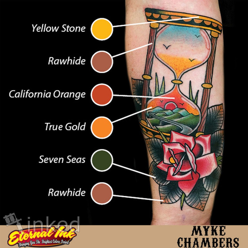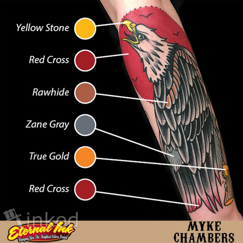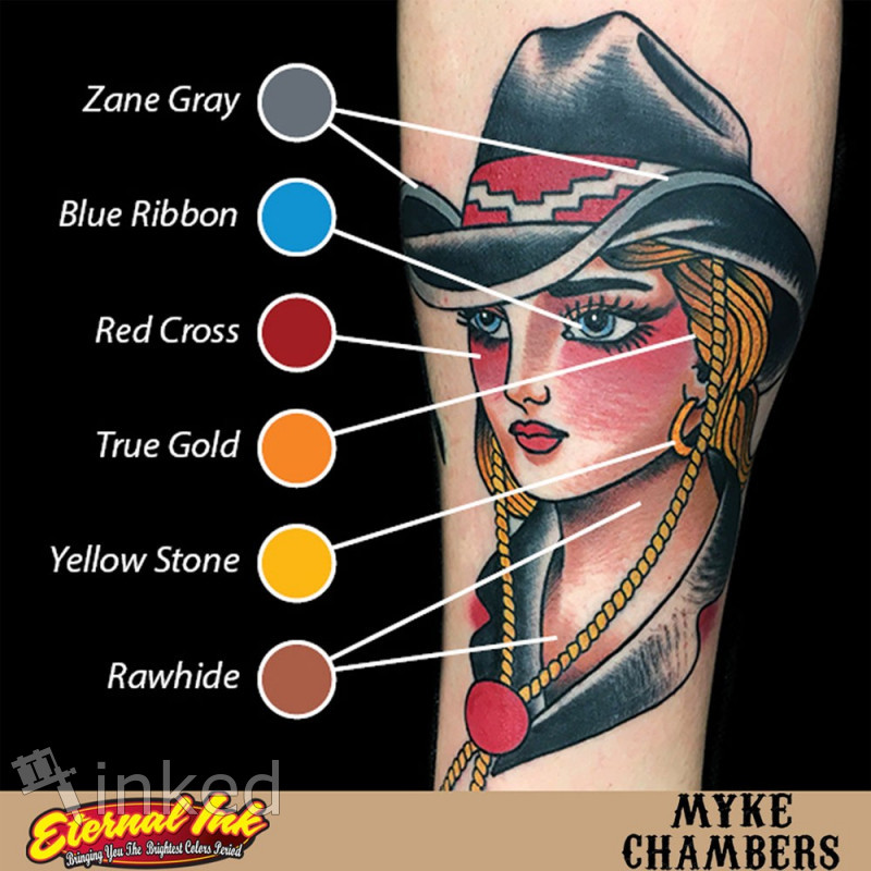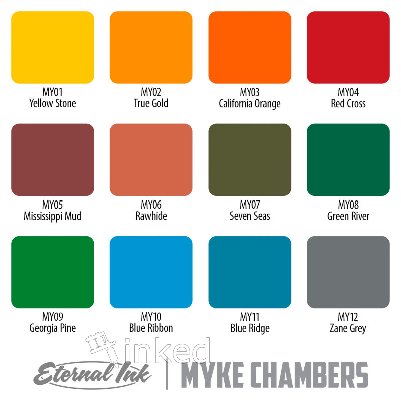 Майка Чемберс внёс свой вклад в традиционную американскую татуировку. Его работы действительно узнаваемы, благодаря насыщенным цветам и сильными символическими образами исполненными в неповторимом стиле. Этот набор упрощает процесс выбора краски благодаря уникальным оттенкам, которые создадут прекрасный конечный результат.