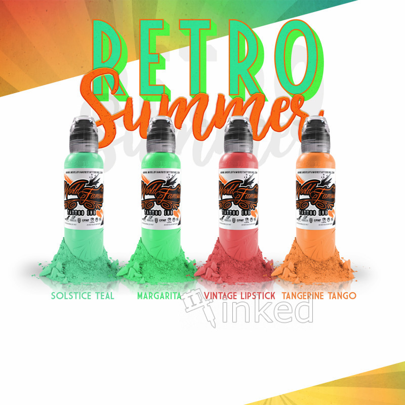 SET - 30 ml World Famous [Gorsky Retro Summer] – тату-краски нового поколения. Это лучшее приобретение, как для профессионалов, так и для новичков. Данные пигменты существуют уже на протяжении 50-ти лет, и становятся популярнее с каждым годом. Густая текстура и равномерное нанесение на кожный покров далеко не единственные преимущества тату-красок американского производителя. Цветовые оттенки насыщенные и яркие, в составе не содержится вредных примесей. Набор состоит из зеленого, бирюзового, оранжевого и красного тонов. Объем одного флакона – 30 мл. имеются все сертификаты качества.