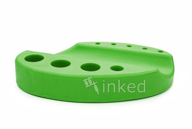 Силиконовая подставка под инструменты – очень полезная вещь для каждого мастера. Упругая и надежная, она позволяет отложить машинку во время перерыва в работе и, при этом, полностью исключить контакт иглы с посторонними предметами. Колпачки для пигментов можно разместить в углубления по верхнему краю подставки.Удобная подставка имеет углубление для ручки татуажной машинки и специальные маленькие отверстия для микробрашей. Выполнена из прорезиненного материала, который не скользит на поверхности во время работы.