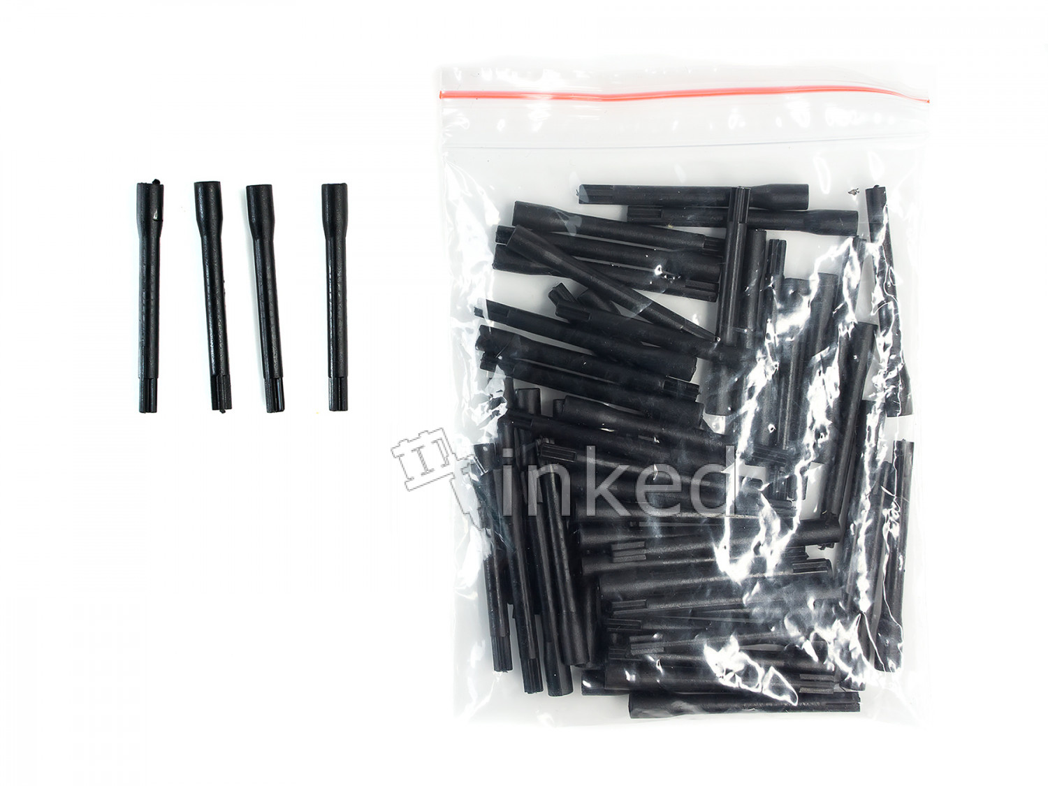 В наборе содержится 50 насадок, их размер составляет 34 на 3 мм, а вес набора составляет 13 граммов.