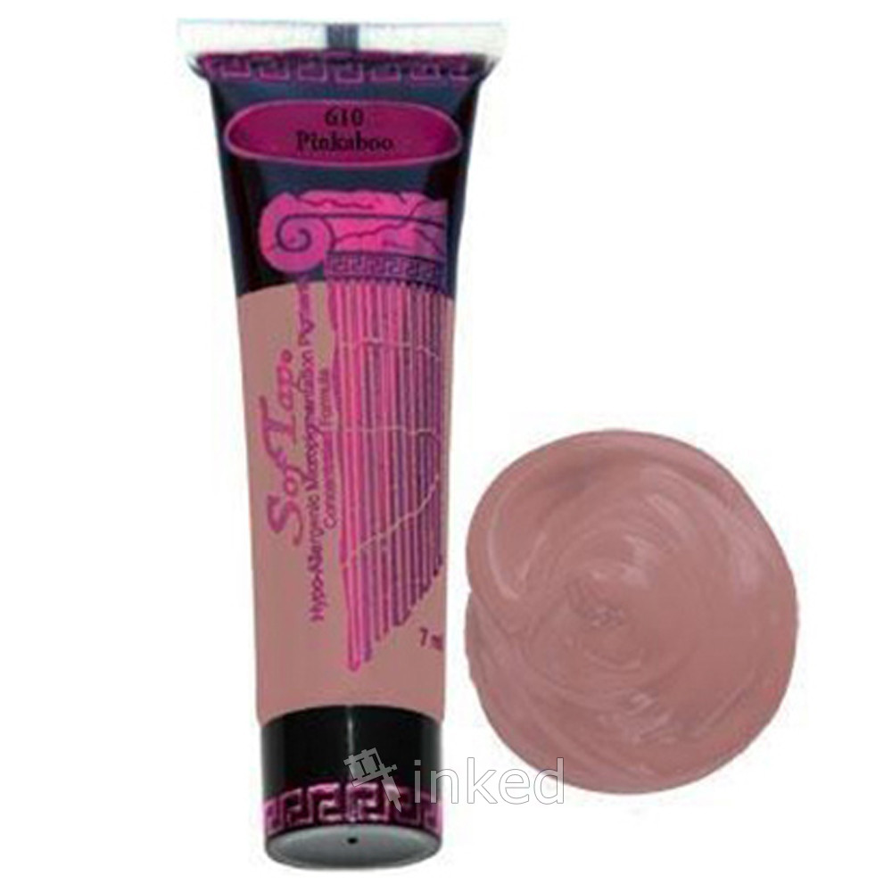 Softap 610 (Розовый песок / Pinkaboo) этот светлый пастельный розовый пигмент очень популярен для татуажа ареол сосков. Получается очень красивый и нежный цвет. 610 Розовый Песок можно смешивать со 600 Сладкая Вата.