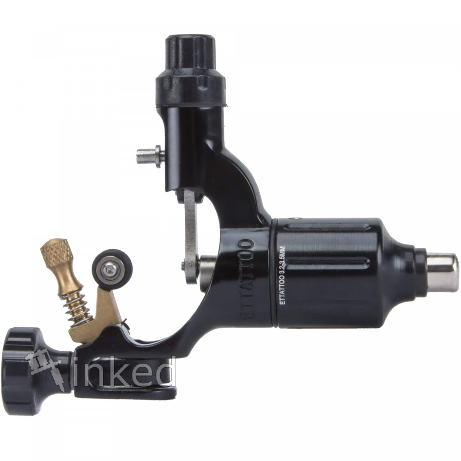 Ход иглы можно отрегулировать от 2,6 до 5,5 мм., благодаря чему можно делать не только контура, но и тени с покраской. Машинка для тату способна функционировать с множеством блоков питания, с различными держателями, иглами и ручками. Учитывая это, в применении бандажных резинок нет никакой надобности.