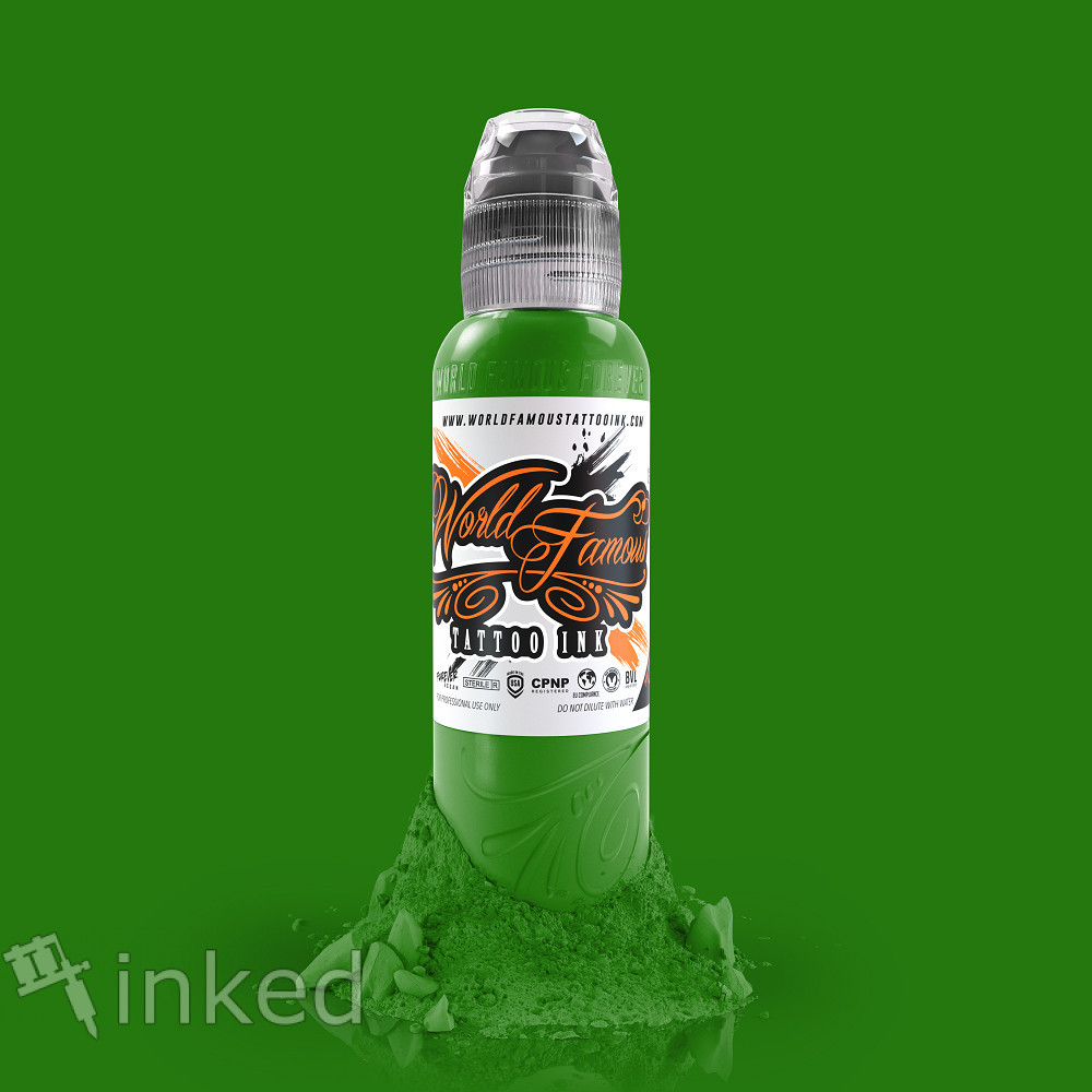 Iceland Green-колір стиглого гороху, однорідний рідкий пігмент від World Famous Tattoo Ink. Тон-холодний. Це якісна американська тату Фарба ...