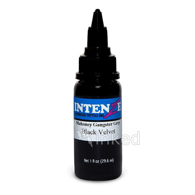 Intenze Mahoney Black Velvet-ченрная тату-Фарба з набору чорнила для татуювань Mark Mahoney Gangster Grey, в якому використовуються перевірені методи відомого майстра чорно-сірого татуювання Марка Махоні.