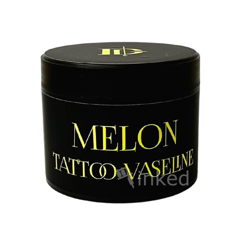Melon Tattoo Vaseline — органічна заміна вазеліну для татуювання, має приємний аромат дині. Використовується саме ПІД ЧАС процесу нанесення татуювання.
