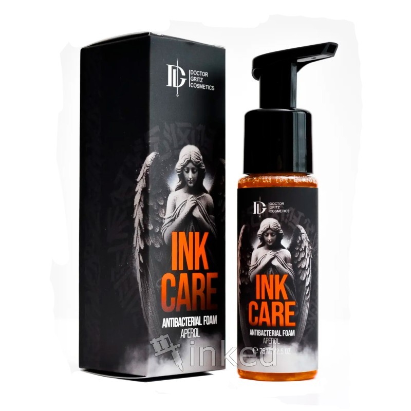 InkCare Aperol Foam — це ідеальне поєднання професійного очищення, захисту вашої шкіри та охолодження свіжого татуювання. Легка текстура пінки м'яко усуває залишки фарби, лімфи та забруднень, готуючи шкіру до подальшого догляду кремом InkSaver.