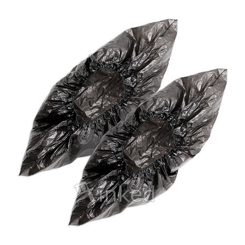 Міцні і зносостійкі поліетиленові бахіли чорного кольору. Є прекрасним захистом від бруду, бактерій і мікробів. Мають еластичну гумку, передбачену для надійної фіксації на взутті.