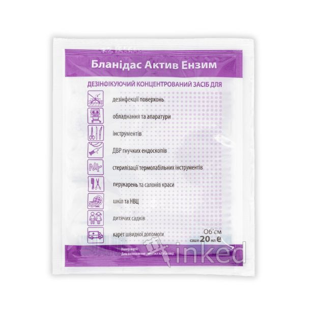 Бланідас Актив ензим - універсальний безальдегідний нехлорний засіб для поточної, заключної, профілактичної дезінфекції та одночасного миття всіх типів поверхонь, для проведення генеральних прибирань, для знезараження медичних виробів (дезінфекція + передстерилізаційне очищення + дезінфекція високого рівня).