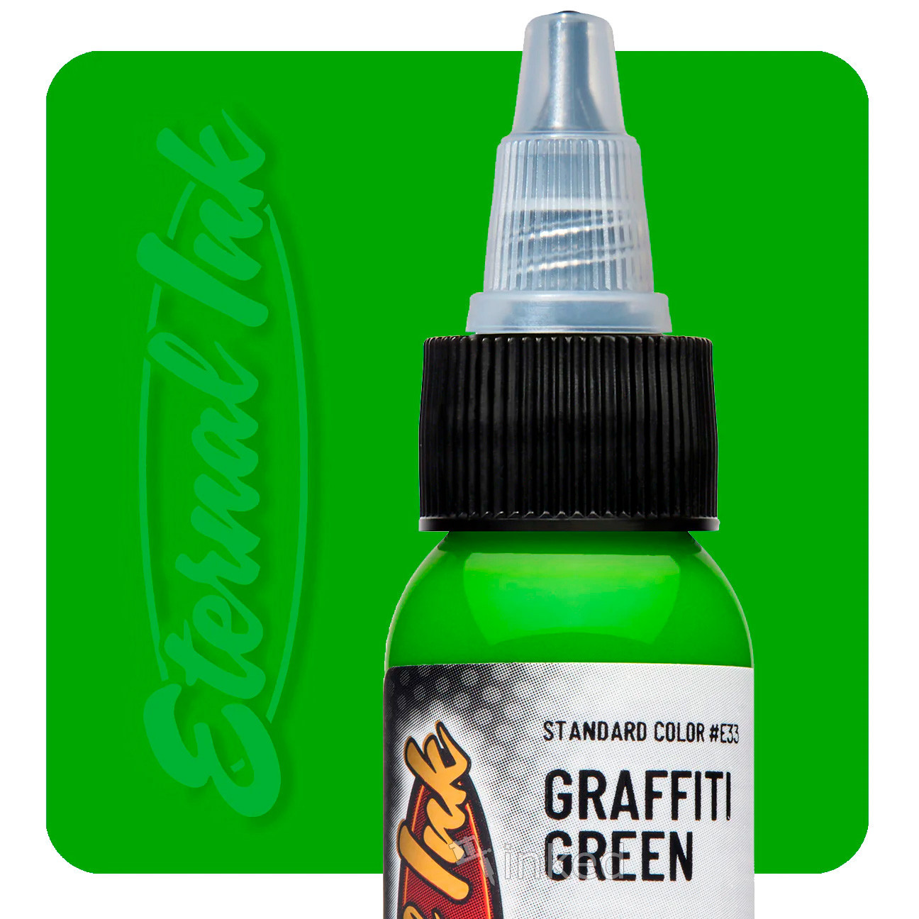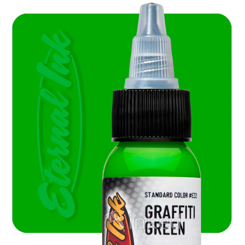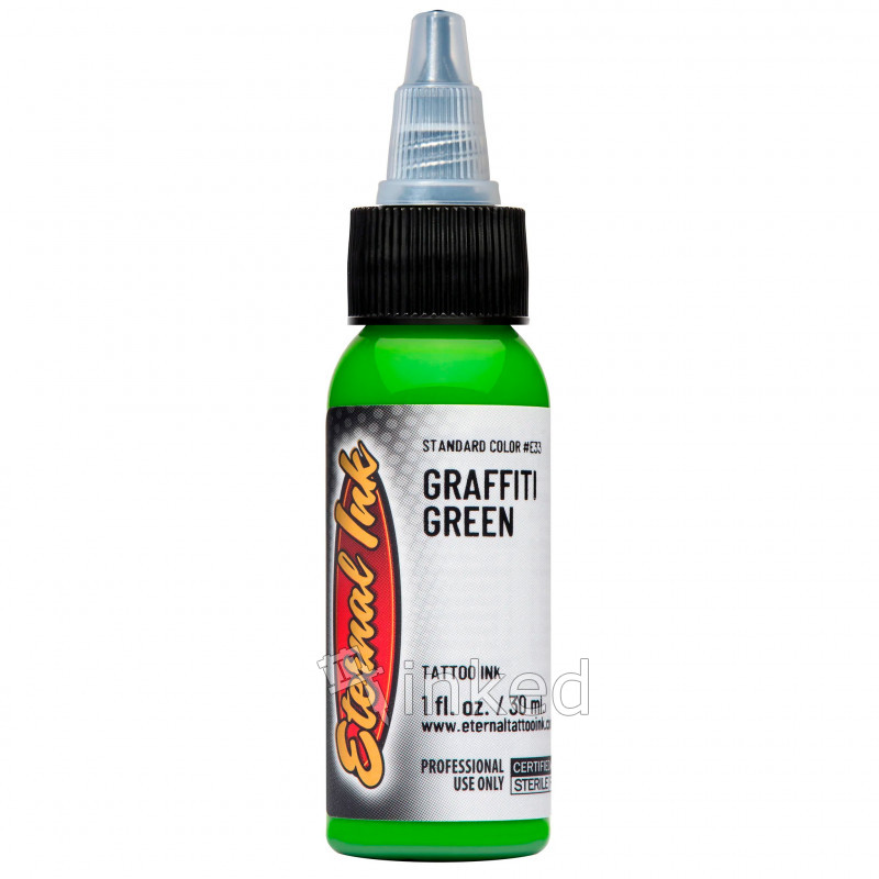 Яскравий салатовий тату-пігмент від Eternal. Насичений, соковитий, інтенсивний зелений. Застосовується в пейзажних і флористичних композиціях. В роботі лягає дуже м'яко. Додасть соковитості будь татуюванні, підкреслить деталі. Після загоєння виглядає надзвичайно яскраво і привертає погляд оточуючих