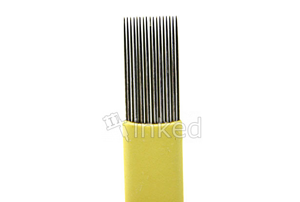 Одноразова голка для мікроблейдінга, що представляє спайку з 21 голки.Використовується в ручній техніці татуажу для розтушовування і "пудров...