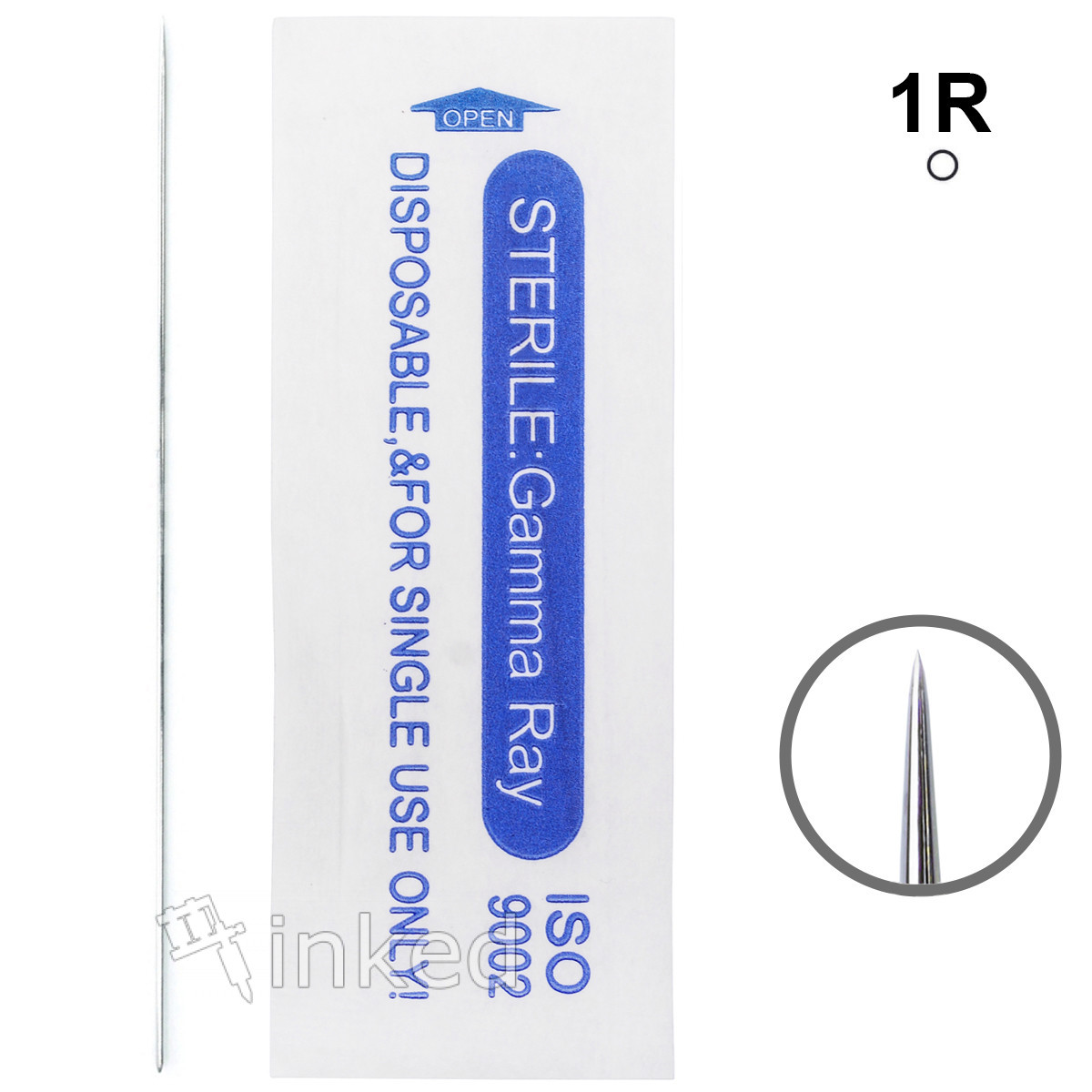 Стерилізовані голки 1R Universal для татуажних машинок-класичні Контурні голки для татуажу. Кожна голки пройшла стерилізацію гамма випромінюванням і упакована в індивідуальну упаковку. Довжина голки: 0.50 мм, Діаметр: 0.25 мм.підходять для моделей Goochie ZX2010/2011, Giant Sun g 8650/9740.